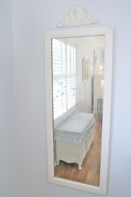 When they tore down the 1925 house across the street, this old heavy mirror was on the curb. It was old and spotted and the mirroring was missing in many spots......It was perfect. I added a plaster ornament above it.